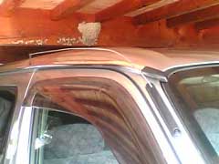 GX・VXグレードのルーフメッキトリム(雨樋)の継ぎ目に、図のような針金(手持ちのIV線を利用)を差し込み、抜けないように根本をインシュロックで縛りました。