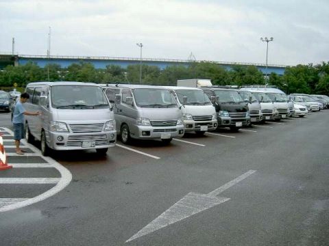 左から雄一号、まぼっちさん、一台置いてゆっくんさん、ひろっちさん、HIDEさん、キングピンさん