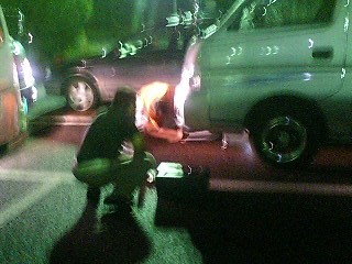 駐車場の暗闇では・・・
