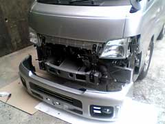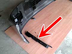 純正バンパーに付いている、「サイドリテーナ」とやらを取り外します。純正で付いているのに気づかず、もう少しで注文していました…(汗) |