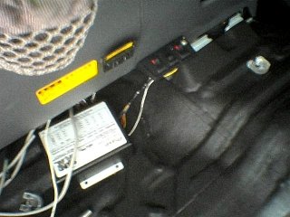 フロア・デッドニング。映り込んでいるモジュールは追越用非常警告灯のユニット |