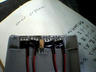 点灯試験。LED自体の表面をサンダーで削り[スリガラス]状態にしたもの。光は丸くなったものの、光の方向性はまだまだ・・・ |