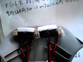 リアピラー取付後のLED配線の出方。ボディに付いているステーはE24ロイヤルのリアトレイ取付用ステー |