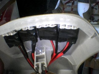リア・ピラーLED装着の図。高輝度青色LED12個使用。ピラー中央にはピラー空間確保の為のスペーサー兼用充木を使用 |