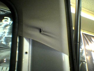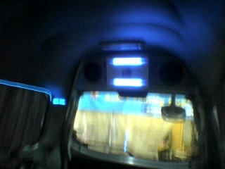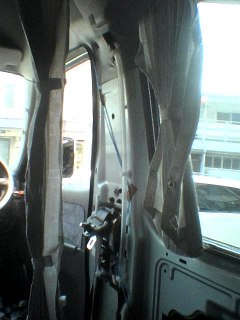 運転席後部ピラー付近。何故かファイバーネオンが・・・手前に見える透明の管はエアコンドレン。 |