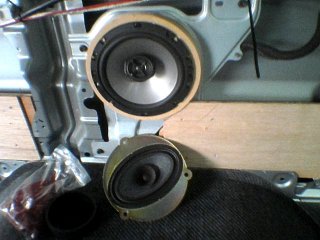 右リアスピーカー取付、ピラー取外状態。この広大なスペースは何かに使える? |