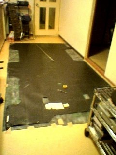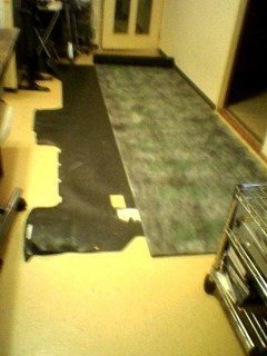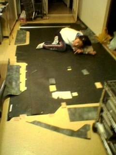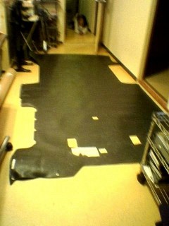 同様に左半分 遮音シートをカーペットの上に敷き込みます。 |