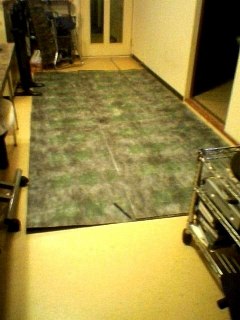某オクで入手したスーパーロングのカーペットをリビングの床に広げます。 |