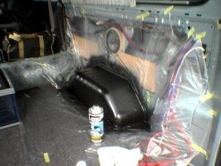 DIYによるセカンド部分のデッドニング。プロ技に比べ、密着度が鈍いかも・・・ |